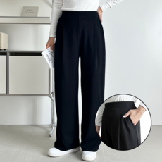 [잇진] 여성용 빅사이즈 하이웨스트 마약스판 세미 와이드 밴딩 슬랙스