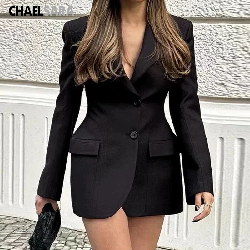 2025 봄 새로운 우아한 블레이저 Feminino 여성 긴 소매 캐주얼 블레이저 노치 칼라 코트 짧은 재킷 여성 겉옷 R899