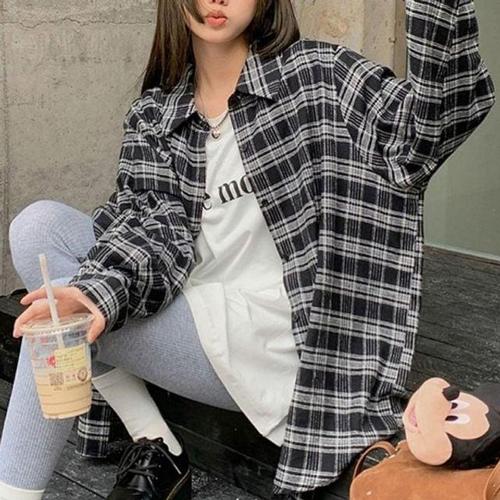 하이틴 여성용 와이드핏 체크남방 와이셔츠프리미엄 WFJIVRO