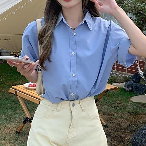 베이직한 데일리룩 여자 룩하프슬리브 와이셔츠 WFJIVV6
