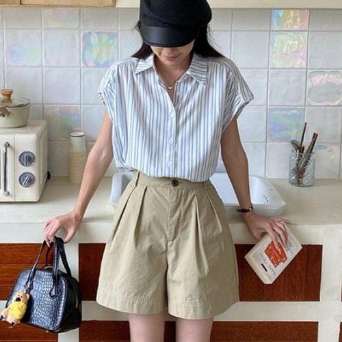 우먼 줄무늬 와이드핏 시즌 와이셔츠 여름상의 WFJIVZP