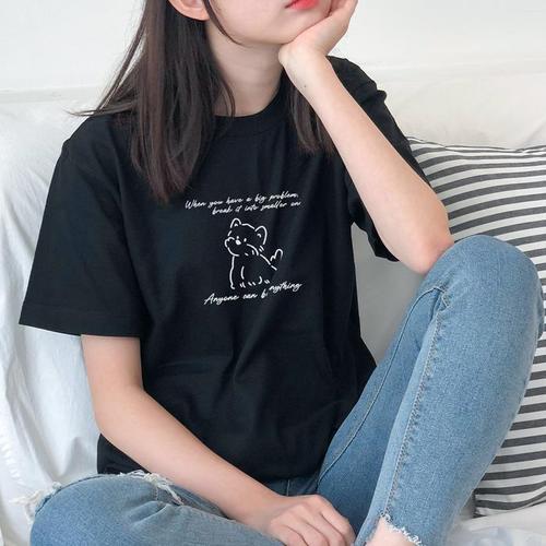 [험블] 강아지 프린팅 여자 순면 반팔티