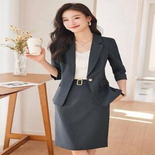 플러스 사이즈 패셔너블 슈트 세트 여성용 봄 가을 신상품 프로페셔널 슬림 미디 스커트 투피스 세트 트렌디 하이웨이스트 A라인 스커트