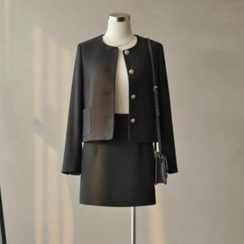 SET 여성노카라 가을겨울 정장자켓+브롯치스커트 세트