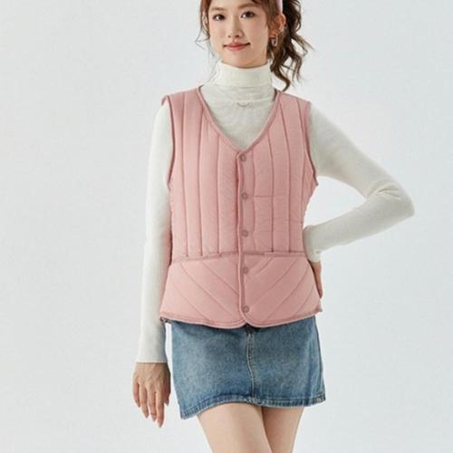 [콩심팥심]여자 가을 물결 퀼팅 패딩 라운드 경량 브이넥 조끼 패딩 조끼패딩
