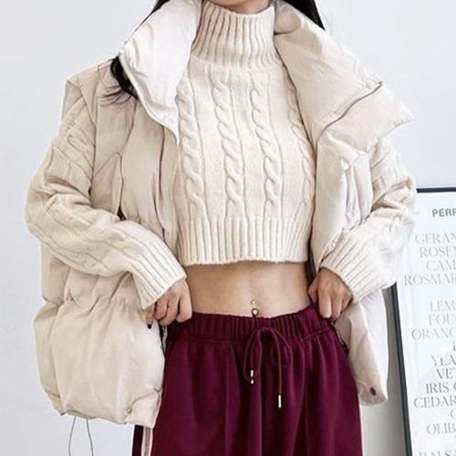 [엄지척]여성 베이직 사선지퍼 밑단스트링 겨울템 조끼패딩_20295272_667501