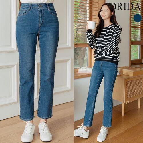 [드리다]여성 겨울 기모 일자 밴딩 빅사이즈 청바지 데님 40-50대 미시 여성 엄마옷 등원 출근 캐주얼