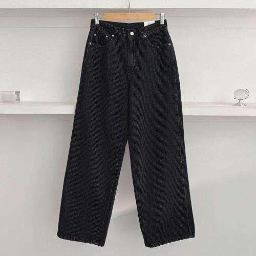 여자 스트라이프 빅사이즈 통 일자 속밴딩 워싱 청바지