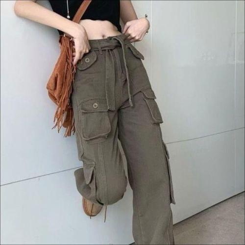밀리터리 카고바지 와이드 여성 팬츠 초가을 복고풍 작업복 캐주얼 바지 밴딩