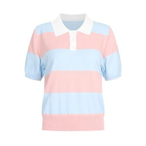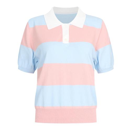 [샵앤]여성 카라넥 단가라 파스텔 반팔 니트 티셔츠 BOM-WKN-20676-핑크