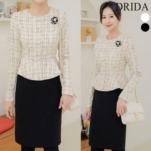 [드리다]여성 트위드 투피스 페플럼 빅사이즈 정장 원피스 40-50대 미시 중년여성 엄마옷 하객 상견례 모..