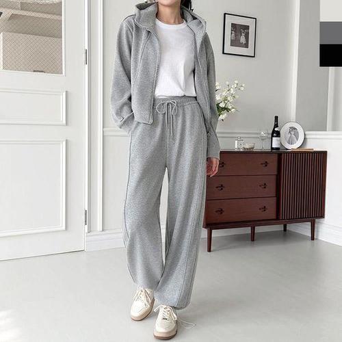 [옷자락] 여자 투웨이 포근 기모 후드집업 라인 와이드 트레이닝 세트