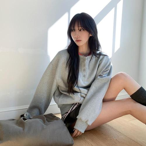 |KHTA1C8|여성용 봄가을 루즈핏 헨리넥 맨투맨 스웨트셔츠