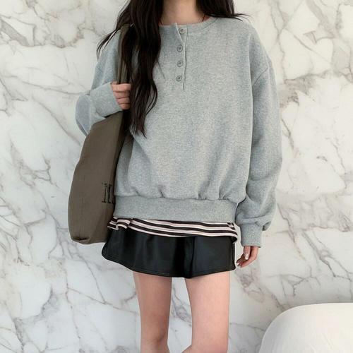 [미라클세븐]여성용 봄가을 루즈핏 헨리넥 맨투맨 스웨트셔츠