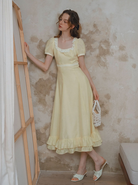 [레비쥬 필라소피] LB_Pastel yellow puff sleeve dress
