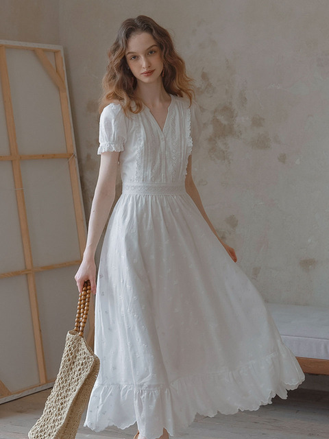 [레비쥬 필라소피] LB_Embroidered cotton flowy dress
