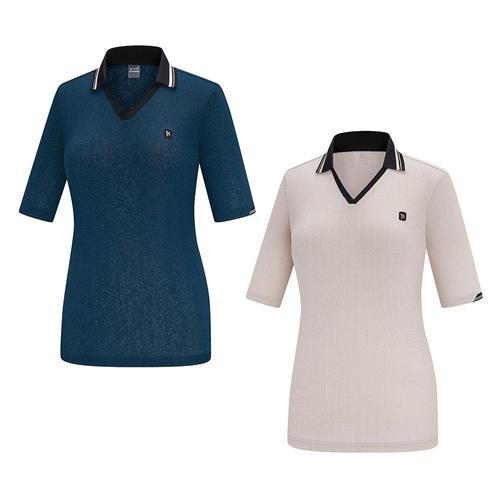 [비티알]비티알 여성 통풍 골지 5부 골프 반팔 카라 티셔츠 2342TB831W