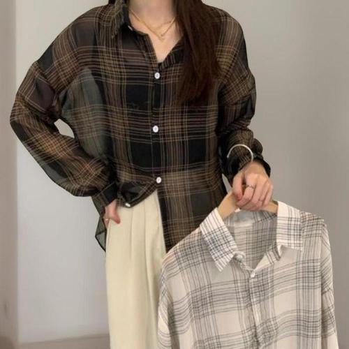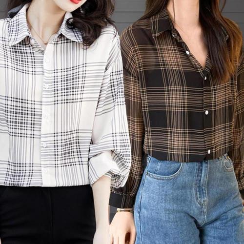 [신상오픈런]여성 키치 무드 체크 루즈핏 7부 셔츠 블라우스