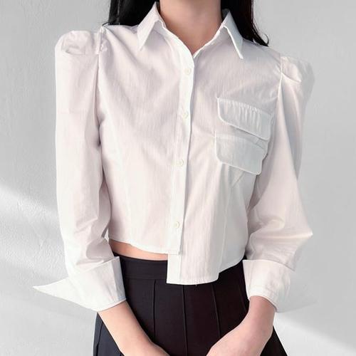 [옷자락]여성 연말 모임룩 벨벳 리본 크롭 셔츠
