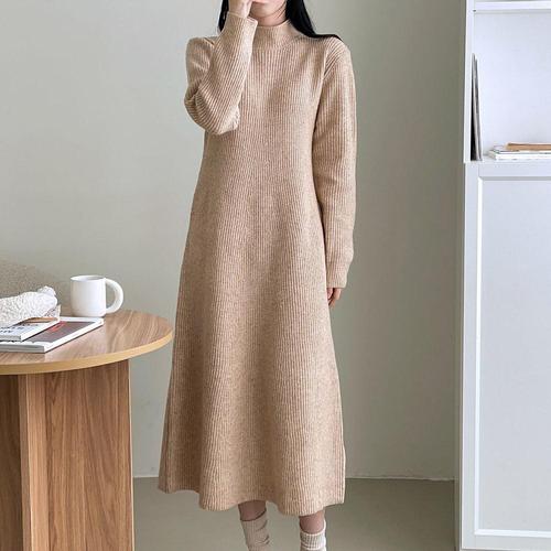 [옷자락] [시즌오프]하찌니트 A라인 반목폴라 겨울 연말룩 롱원피스_5
