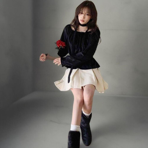 [다잇템][다잇템] 여자 연말 잔주름 FW 모임룩 캐미 벨루어 미니원피스_24387512_588872