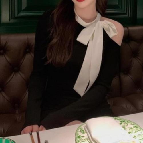 [옷자락] 여성 연말 모임 드레스 리본 오프숄더 원피스