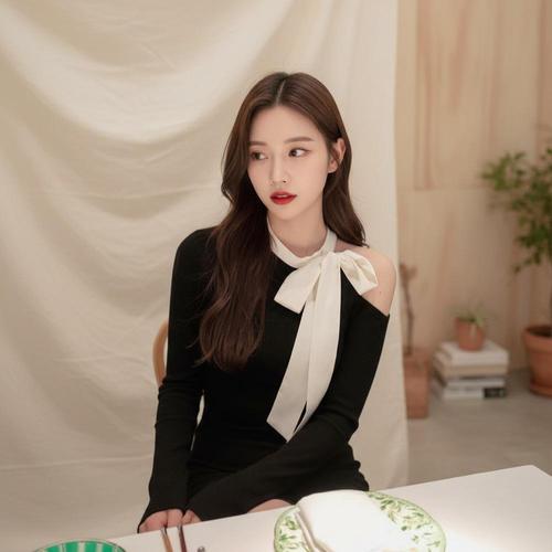 [옷자락] 여성 연말 파티용 리본 오프숄더 드레스