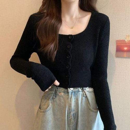 [셀러허브_여성트랜드패션]ONM 여성 카디건 연예인 크롭 스퀘어넥 가디건