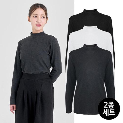 [마운틴벨리][1+1] 여성용 립멜란지 기모 하프넥 소프트 이너 목폴라 티셔츠