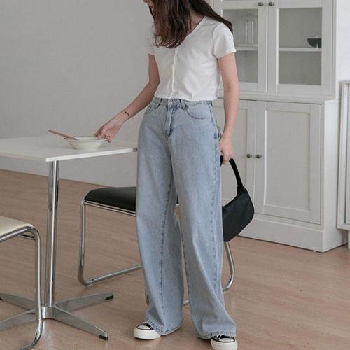 [옷자락] 여자 프리미엄 와이드핏 데일리 연청 청바지