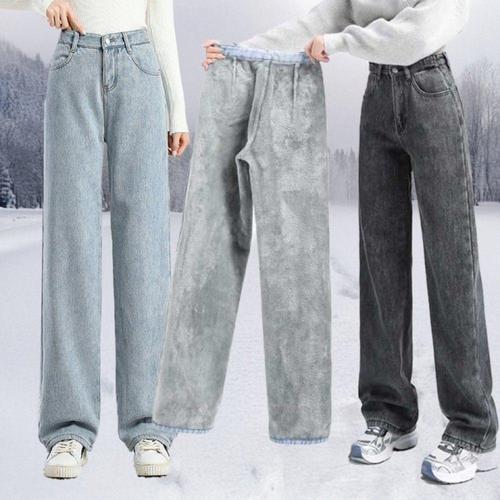 [오너클랜]인기상품 겨울용 여성 기모 와이드핏 데님 청바지 블랙 연청 스트레이트 팬츠 [WFLI1GG_260227]