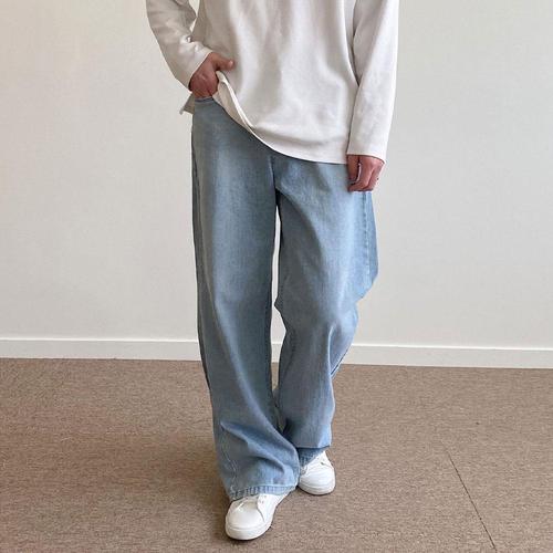 남자 베이직 연청 와이드 데님 팬츠 UJ-JEA-8013