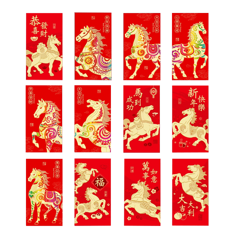 TEMU 그녀/그를 위한 선물 12개 세트 말의 해 - 성인용 전통 중국 설날 현금 선물, 재사용 가능한 축제용 홍바오, 말 무늬와 행운 상징, 설날, 결혼식, 생일용 (현금, 소품 선물에 이상적)