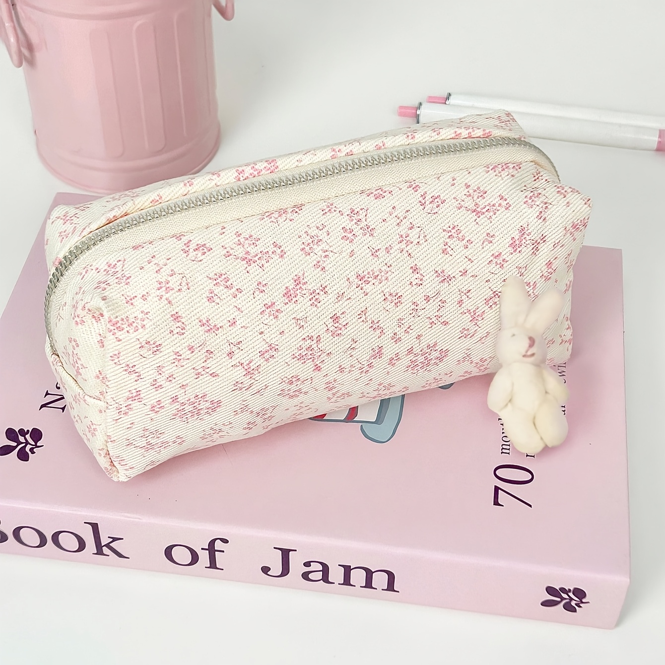 TEMU 1개 소형 프레시한 플로럴 프린트 필통, 감성의 고급학생용 데스크탑 수납가방, 내추럴 스타일 메이크업백 ( 펜던트 미포함), 공부 필수품, 여행 정리도구, 귀여운 필통, 트렌디한 Stationery, 손세탁 가능, 퀄리티 있는 솔기, Stationery Bag, 컴팩트 Organizer, 핸드메이드 애호가 및 여행자를 위한|필통