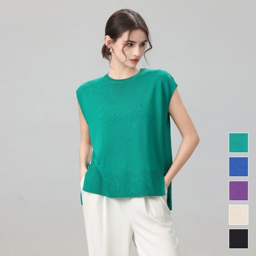 여성 국산 루즈핏 레이어드 V넥 옆트임 6컬러 니트 조끼 JLE-WVS-4295-그린