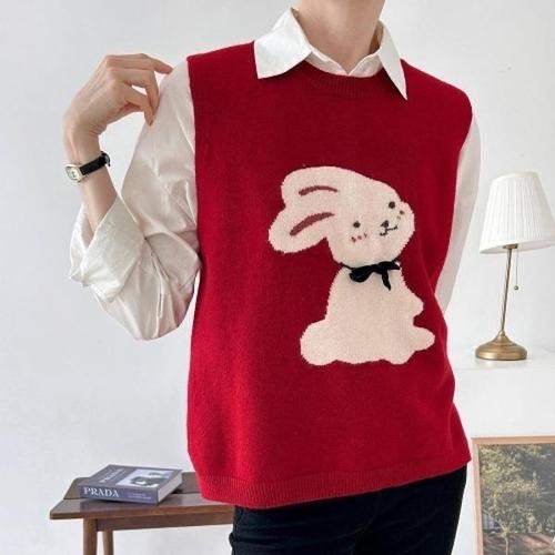 여성 국산 루즈핏 레이어드 V넥 옆트임 6컬러 니트 조끼 JLE-WVS-4295-아이보리
