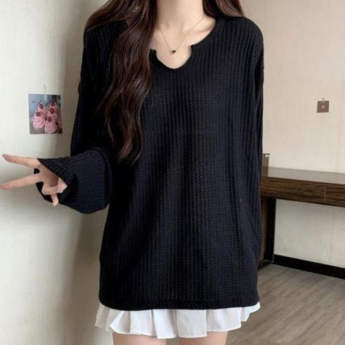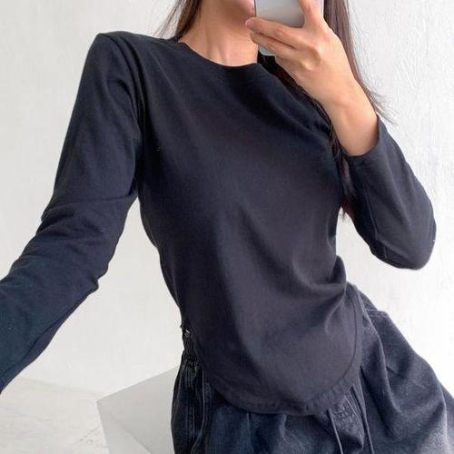[에이치플러스몰]라운드 긴팔 루즈핏 트임 티셔츠 여성 옆트임티셔츠