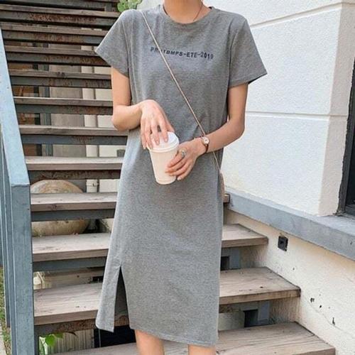 [모노무드]모노무드 루즈핏 반팔 롱원피스 데일리 옆트임 티셔츠원피스