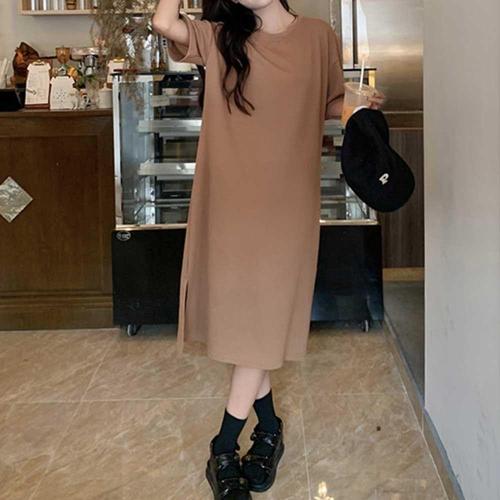 [모노무드]모노무드 옆트임 롱티 원피스(반팔) 여름 반팔 롱원피스 옆트임 루즈핏 편한 원피스