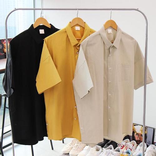 BLEO 남자 여름 기본 무지 옆트임 데일리 반팔 남방 셔츠
