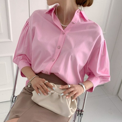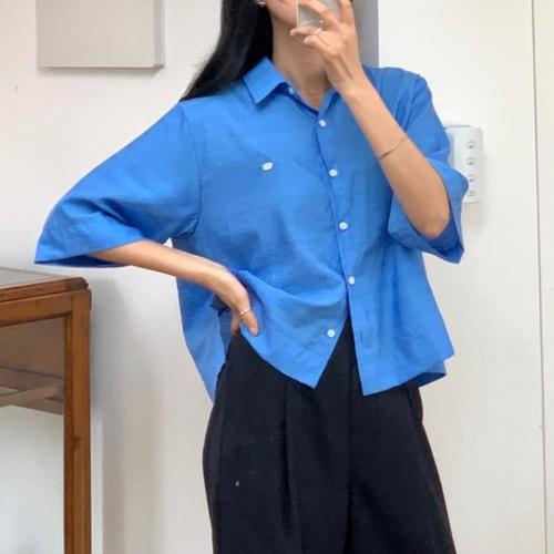 [옷자락]여자 무지컬러 레이온 옆트임 세미크롭 셔츠 남방