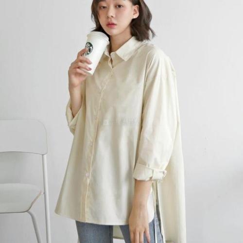여성 클래식 오버핏 옆트임 면100 셔츠 남방