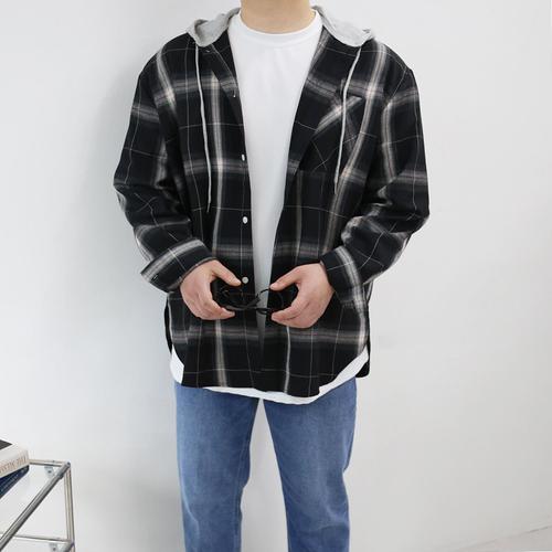 [엠클로]남자 오버핏 빅사이즈 옆트임 체크 남방 후드 셔츠
