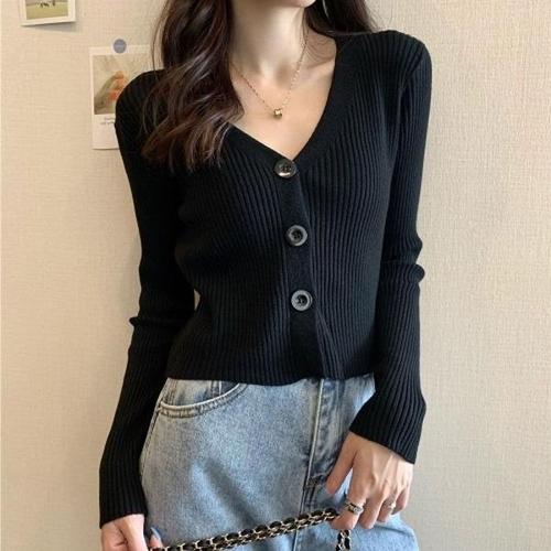 사계절 예쁜 슬림핏 여성 스몰 단추 크롭 가디건