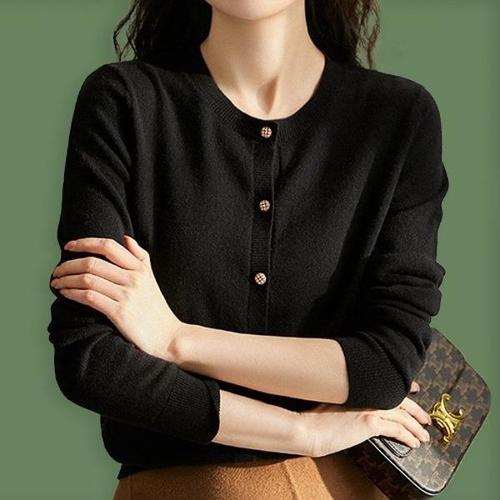 [엄지척]여성 봄 가을 무지 라운드 예쁜 단추 가디건 블랙_19804380_667501