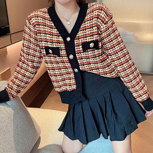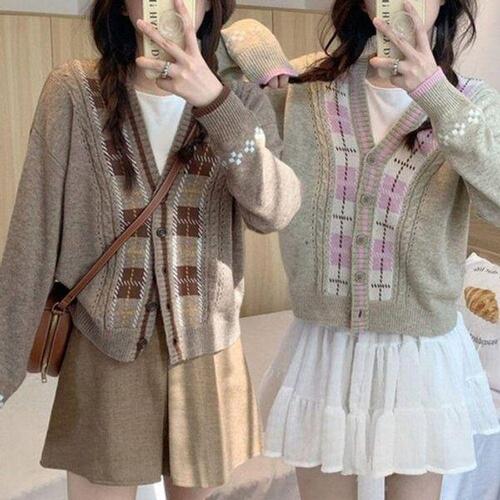 [끌레아]여성 봄 가을 체크 브이넥 단추 가디건 니트 봄가디건 겨울 교복 여자 여자봄 학생 예쁜