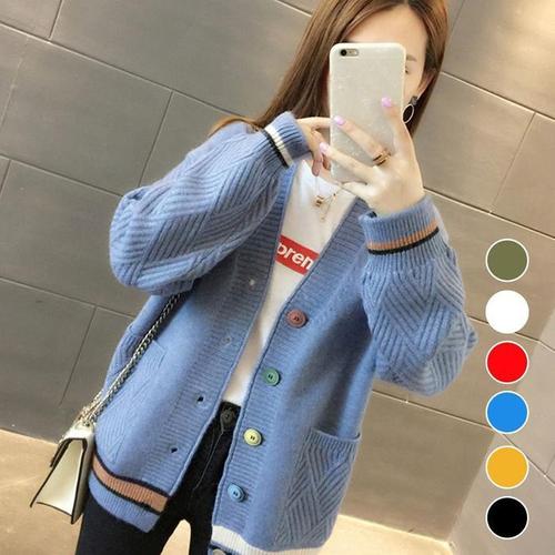[에이치플러스몰]단추 가디건 니트 여성 브이넥 주머니 예쁜