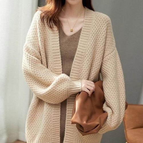 [엄지척]여성 루즈핏 스타일 노버튼 예쁜 니트 롱 가디건_19801138_667501