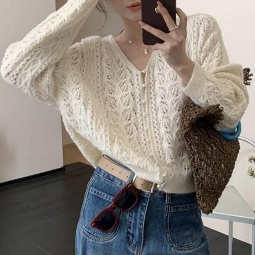 [에이치플러스몰]여성 긴팔 진주 단추 브이넥 예쁜 니트 펀칭 가디건