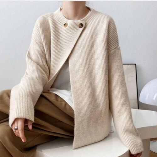 [끌레아]예쁜 청순 여성 유니크 넥단추 골지 니트 랩 가디건